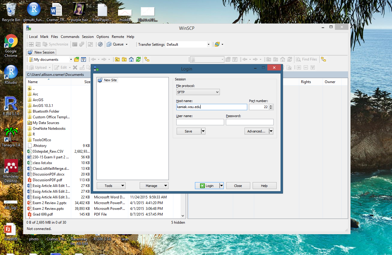 Connecting to Kamiak to transfer the file using WinScp